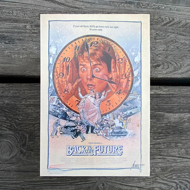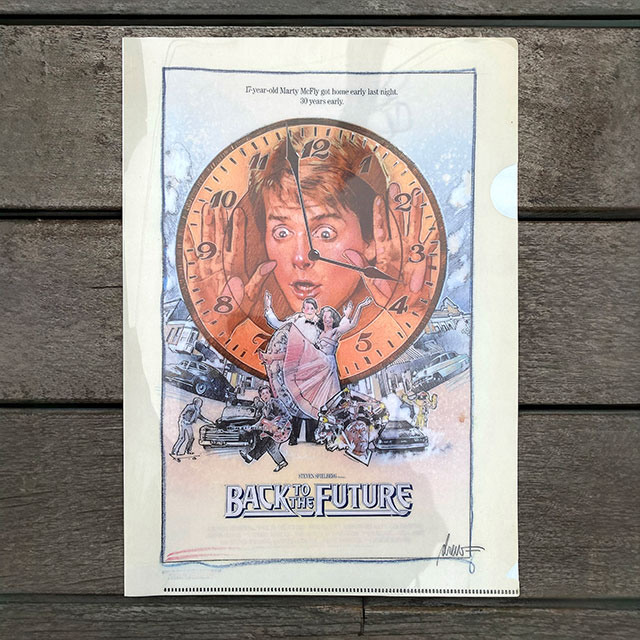 ドリュー・ストルーザン氏によるこのイラストは、『バック・トゥ・ザ・フューチャー』製作陣とユニヴァーサル映画役員らへのプレゼンテーションとして描かれた10種類程度のなかの一枚で、最終的には採用されることはなく、このサンプル画による各グッズはファン必携のアイテムです!PHONO鎌倉でも販売しています。